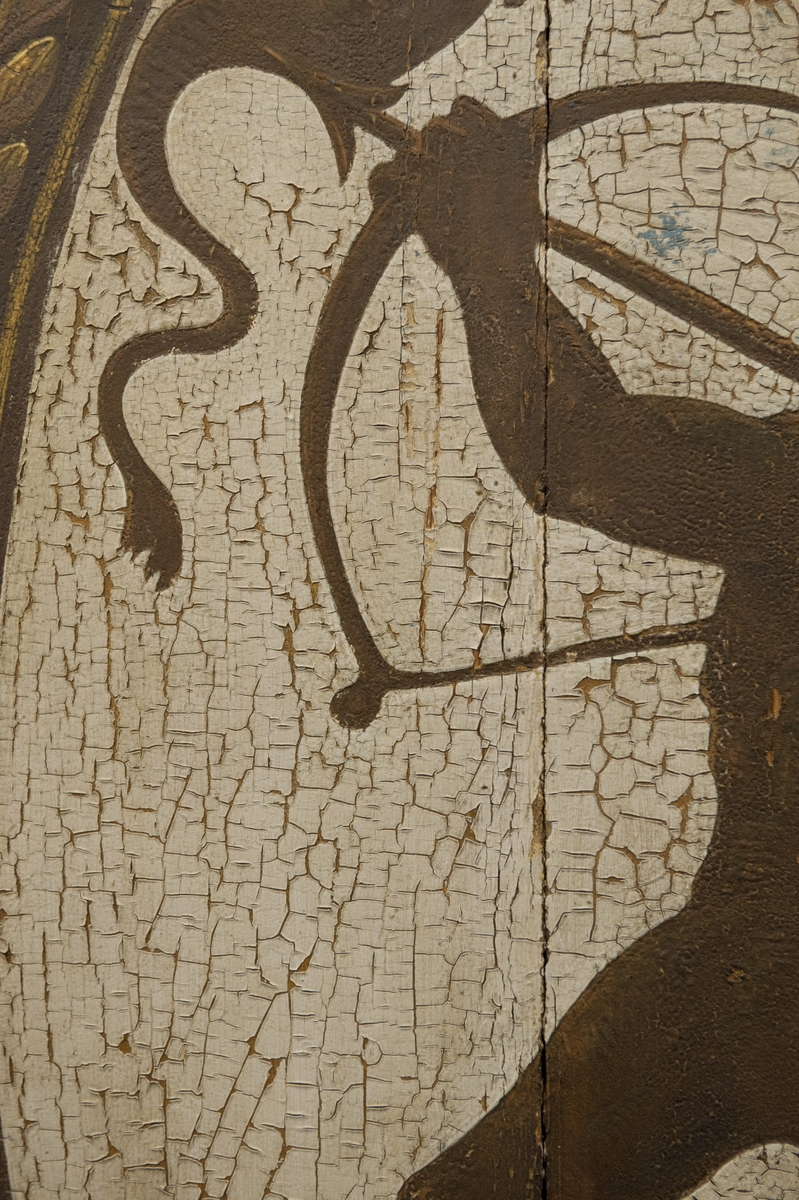 Detalj av sköld med antikt motiv på sidan av den kungliga slupen DELFINEN.