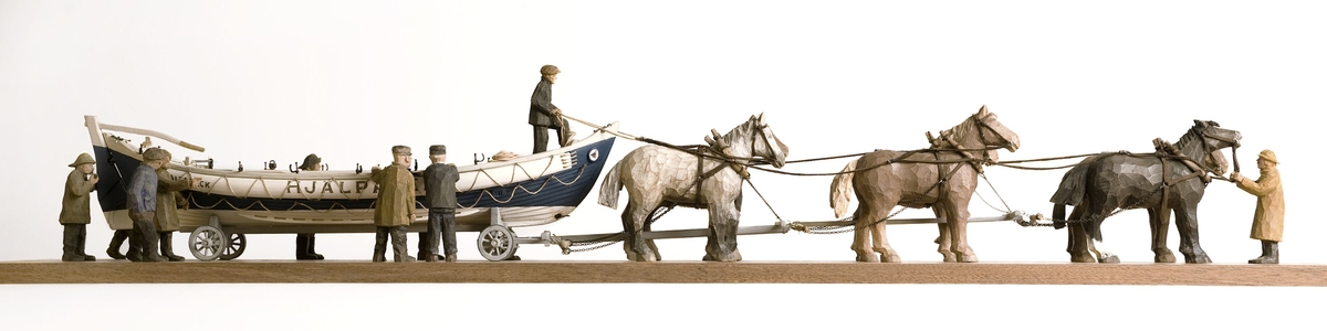 Träskulptur av räddningsbåten HJÄLPAREN
