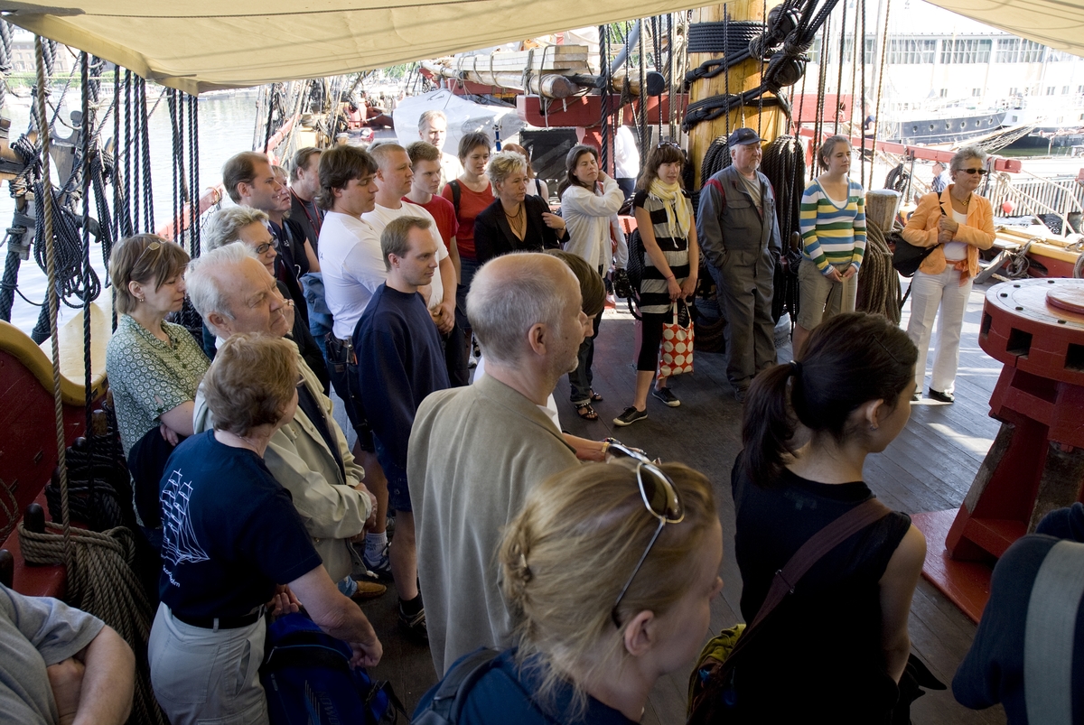 Titel: Tre seklers Flaggskepp, maj 2008. SMM:s personal får en rundvisning på GÖTHEBORG.