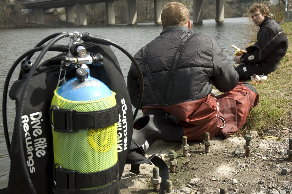 Marinarkeologer på Lilla Essingen maj 2005.