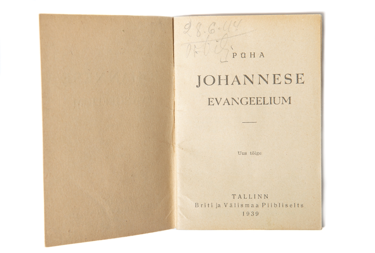Estnisk upplaga av Johannesevangeliet från 1939. Togs med på flykt till Sverige år 1944.