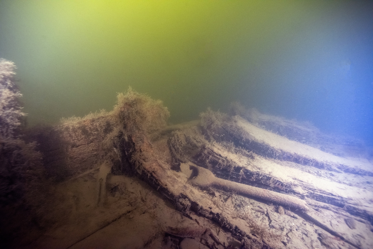 Bottenstockarna på den eventuella Lodjan svänger kraftigt upp mot skrovsidan.
