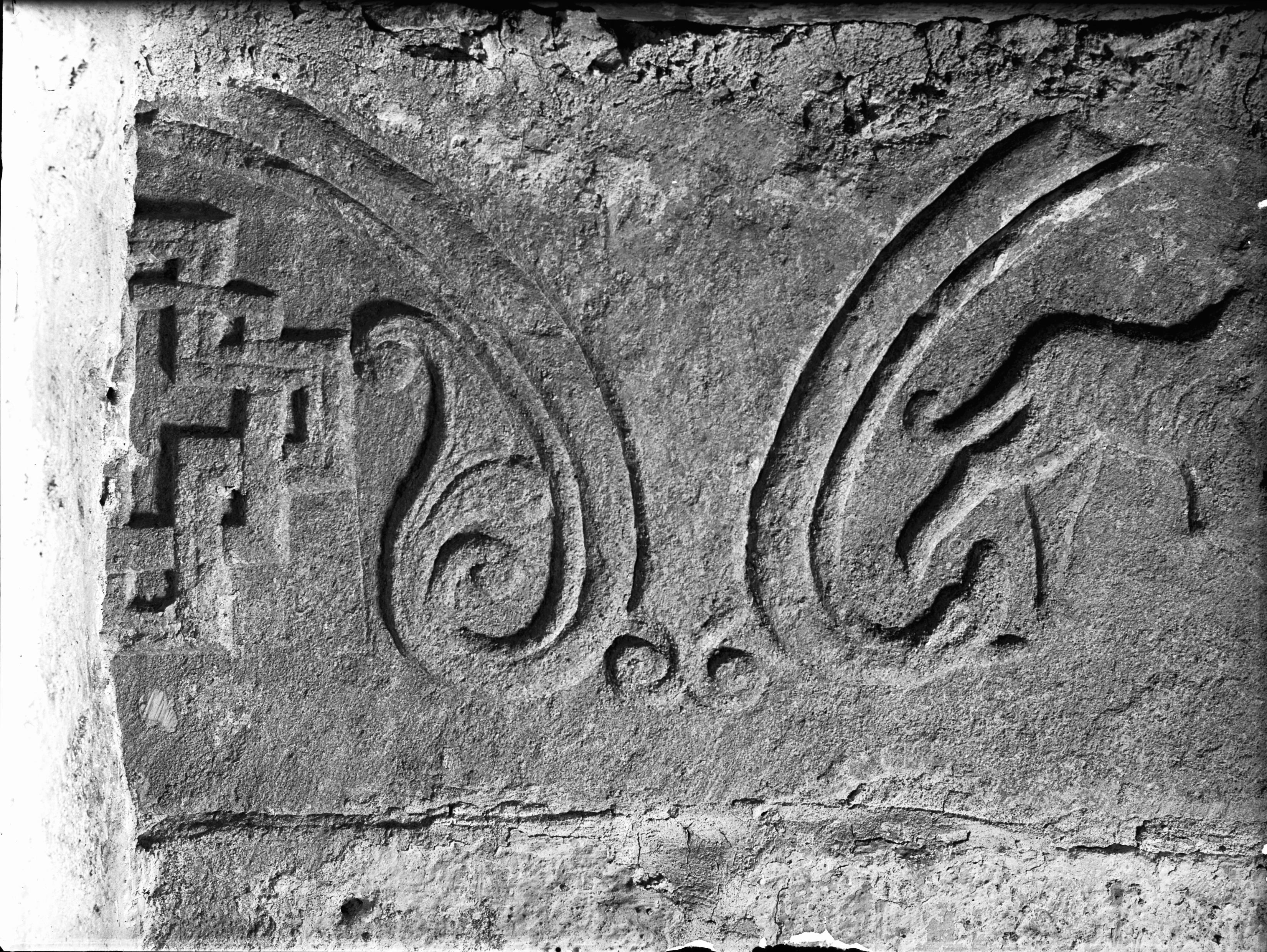 Byzantiosreliefer på korets sydfasad. Flätverk.