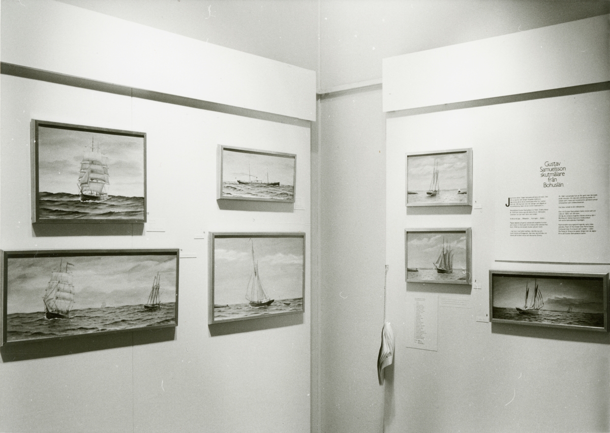 Utställningen "Gustav Samuelsson Skutmålare från Bohuslän". Konstverk samt beskrivande text om konstnären.