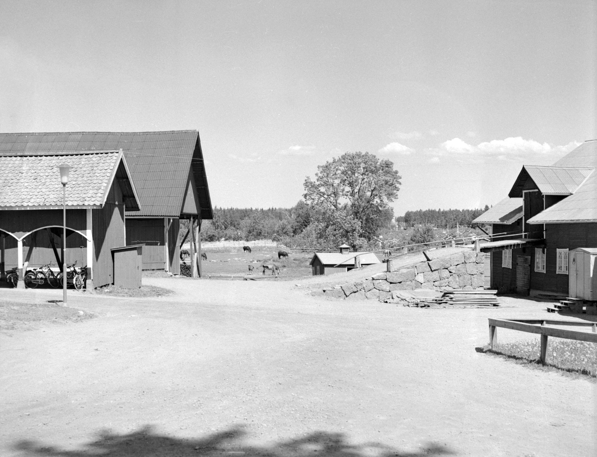 Från Gamla Linköpings lantliga del Valla gård med motiv från stallbacken. Förrådsbyggnaden till vänster bortom lidret brann upplysningsvis ned 2019.