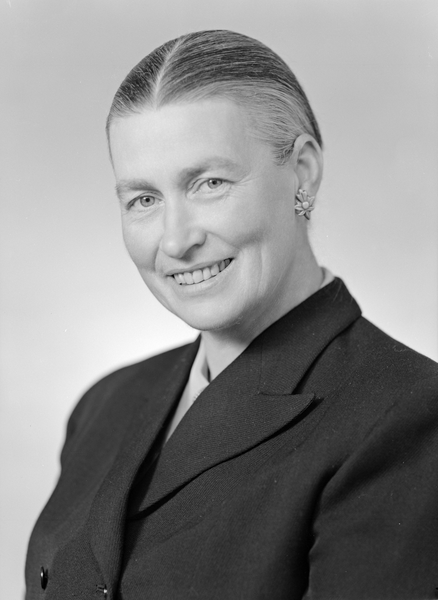 Porträtt av Röda kors-syster Tyra Myrgård. Gift med kyrkoherden i Vadstena pastorat, David Myrgård.