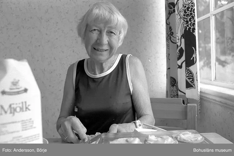 "Frukostbestyr i köket, Eva Eriksson intar sin frukost"
