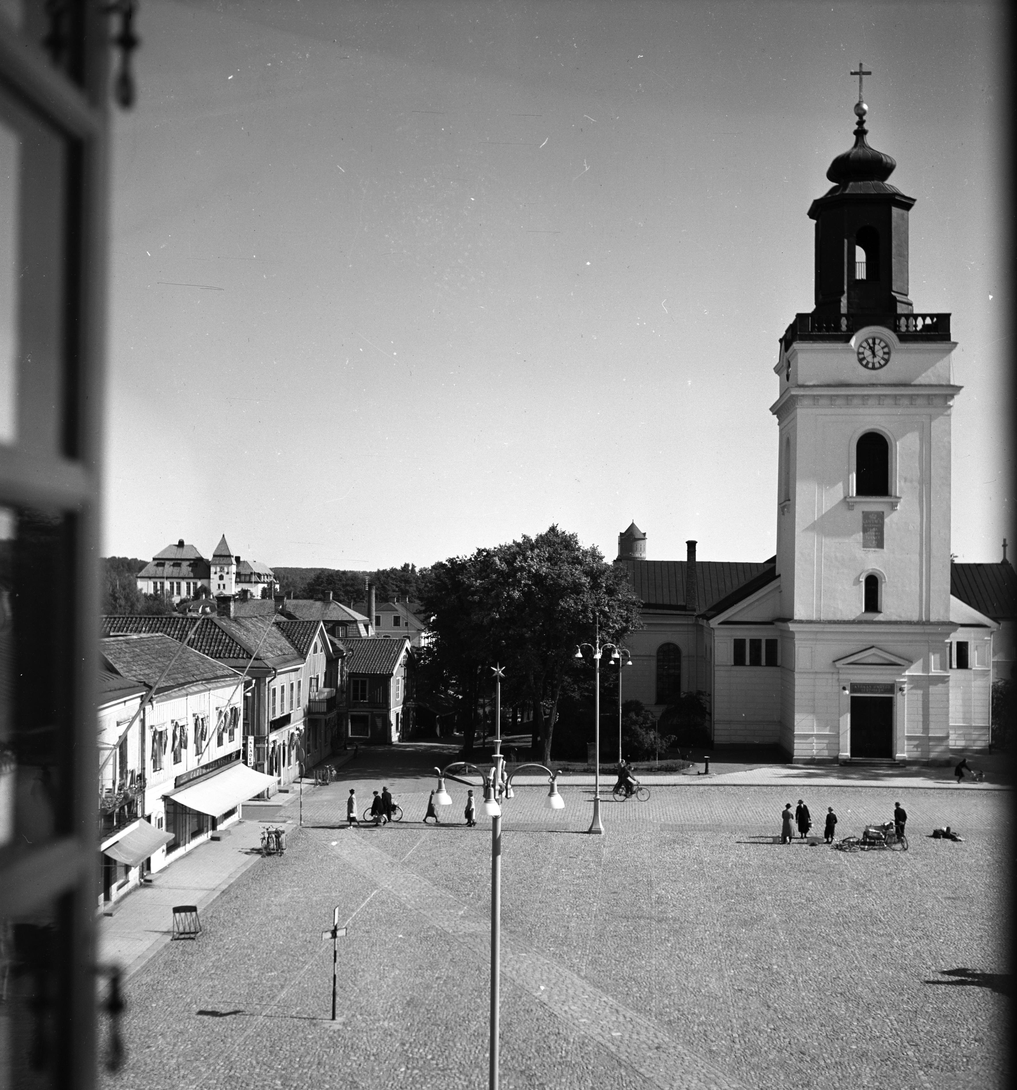 Stora torget och Eksjö kyrka. Bilden tagen på 1940-talet.