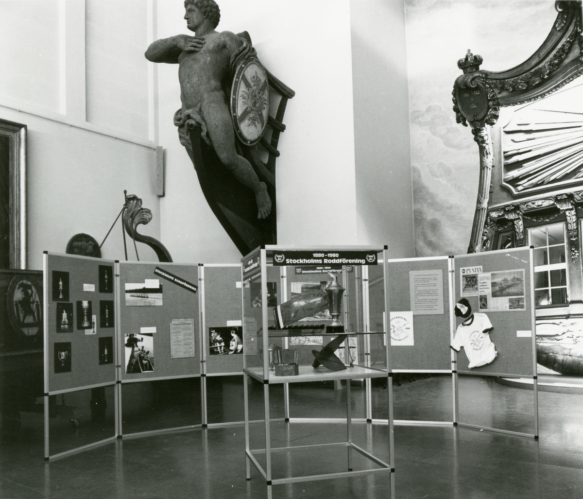 Utställningen "Stockholms roddsällskap 100 år 18801980". Skärmutställning och monter i minneshallen med fotografier och föremål kopplade till roddsällskapet.