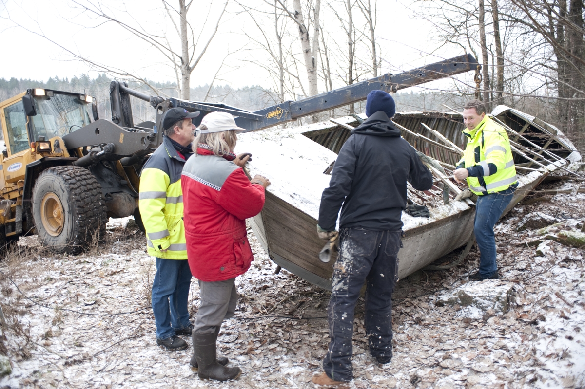 METEOR som legat bortglömd i en åker i många år, tas omhand av två norska bröder. Här sågas hon itu för att kunna fraktas till Norge för renovering. Anders Vaerneus är kontaktperson.