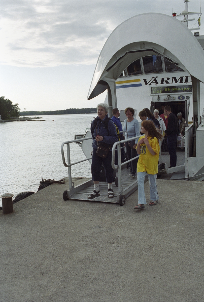 Ulla Salomonsson mottas av barnbarnet Stina Andersson, Ingmarsö