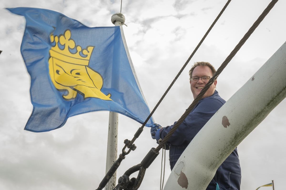 Benjamin Hedlund vid gösen på isbrytaren Sankt Erik.