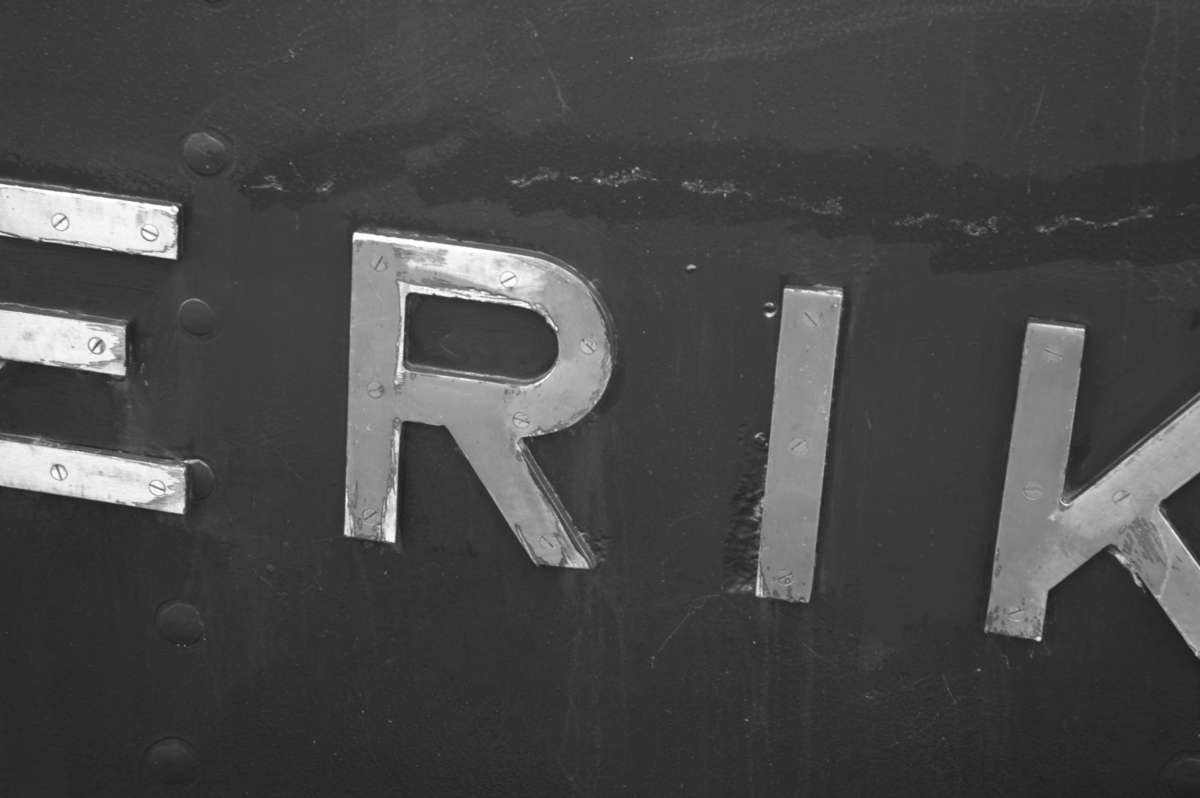 Del av fartygsnamnet i aktern på museifartyget SANKT ERIK.