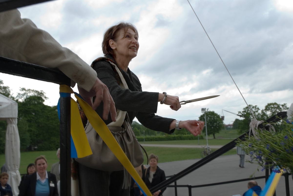 Fanny Rodwell klipper bandet och öppnar utställningen