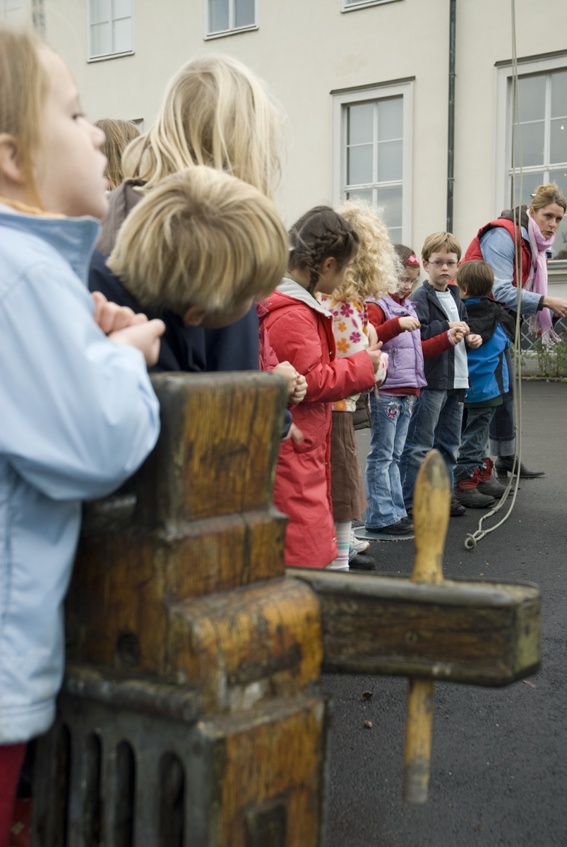 Titel: Christina Taube med skolklass vid GLADANS mast,Sjöhistoriska Museet.