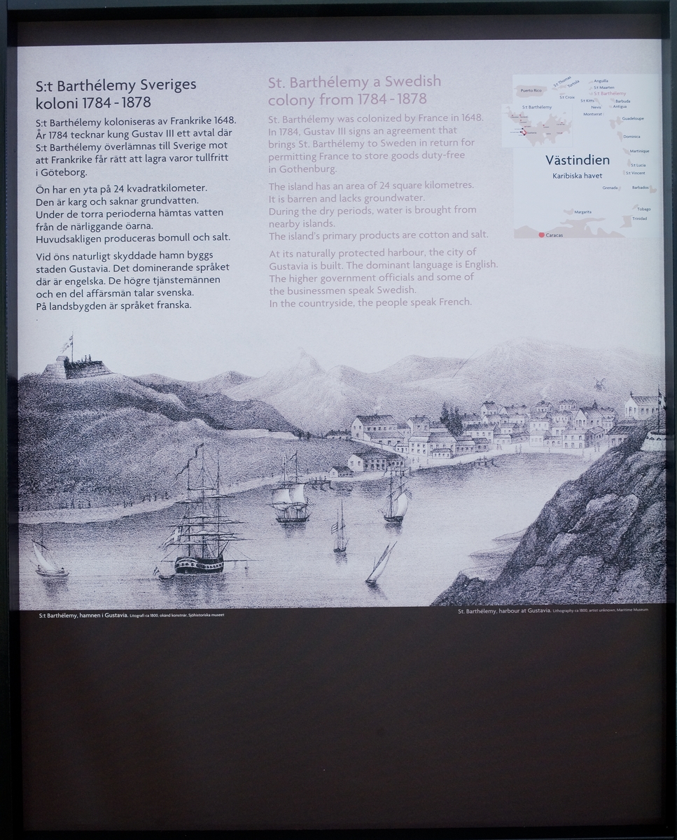Vandringsutställningen "En dunkel historia"om den transatlantiska slavhandeln. Skylt med utställningstext.