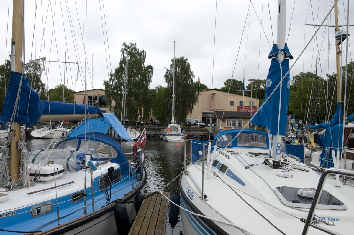 Skyltar på fasaden "Kungliga båtar" och"Sjöhistoriska på Galärvarvet"