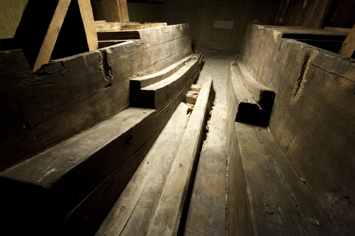 Titel: Kanonslupar från 1800-talet under det gamla Exercishusets golv(Numera Arkitektur museum) Fredrik Henrik af Chapmans konstruktion, sluparna fungerade som exercisinrättningar.