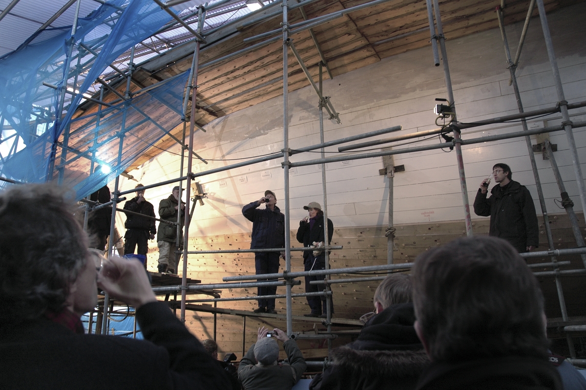 Titel: STOCKHOLMS BRIGGEN sista plankan på plats 2005.