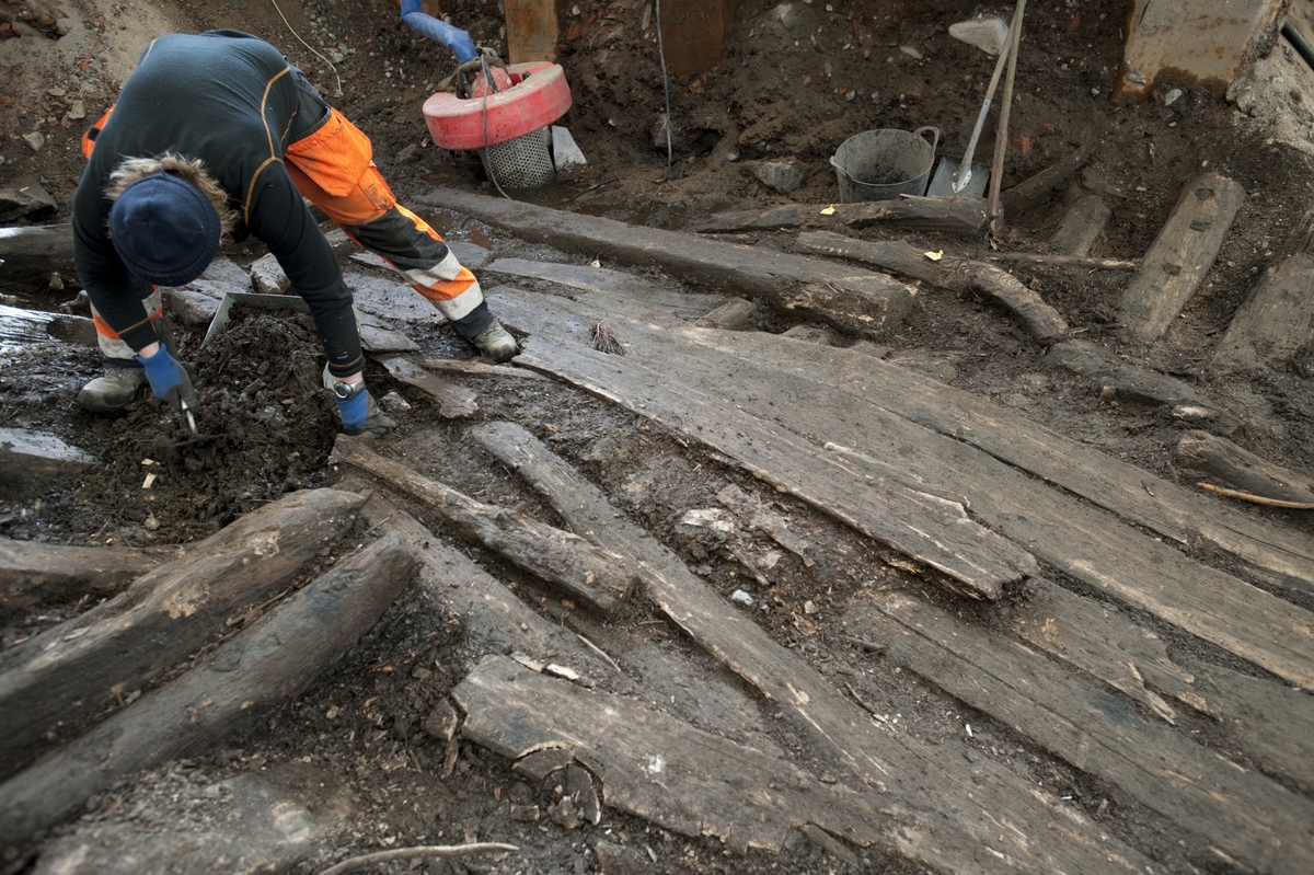 Arkeologisk undersökning vid Grandhotell, Blasieholmen 23 nov 2011 inför renovering av kaj