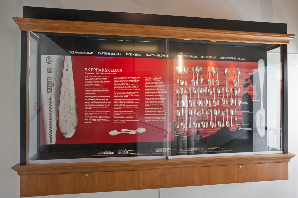 Utställning "Skepparskedar" i Sjöhistoriskas trappmonter.