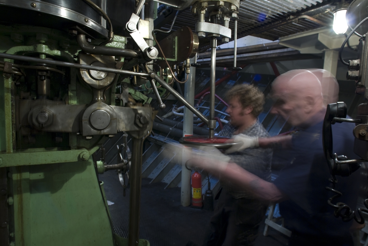 Karl och Ralf i maskinrummet på isbrytaren Sankt Erik.