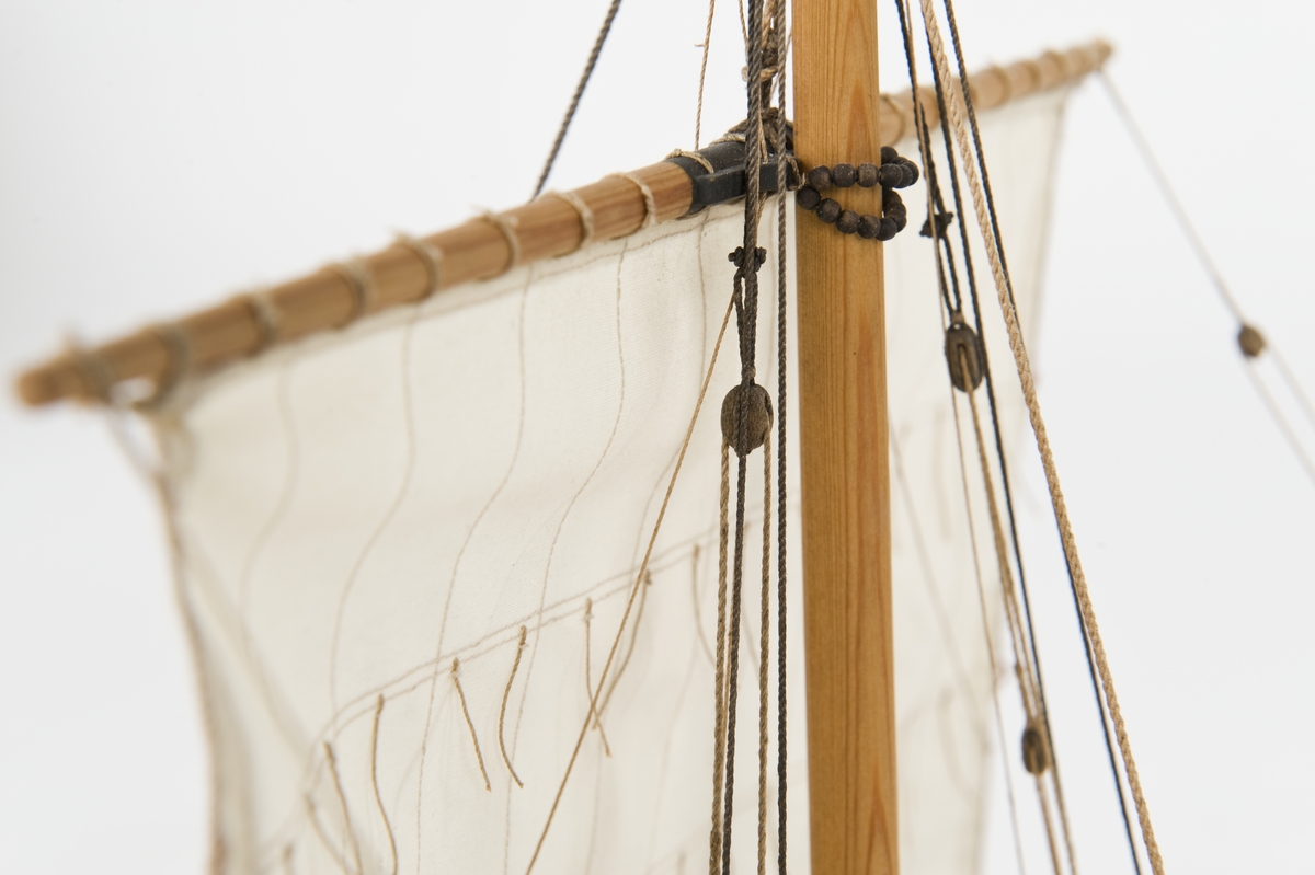 Titel: Modell av mälarjakt från 1700-talet, byggd av Stefan Bruhn i Sjöhistoriska museets modellverkstad. Detalj.