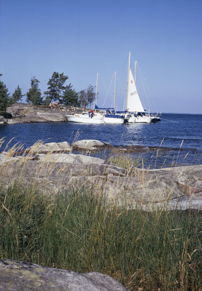 Albin-båtar förtöjda vid holme. Marknadsföringsbild.