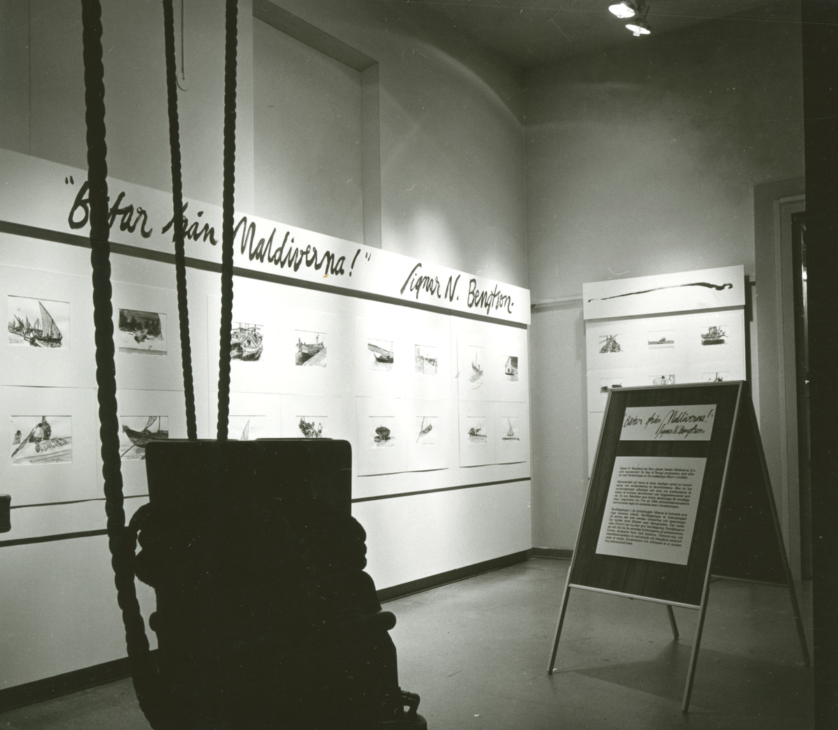 Utställningen Båtar från Maldiverna med teckningar av Signar Bengtsson.