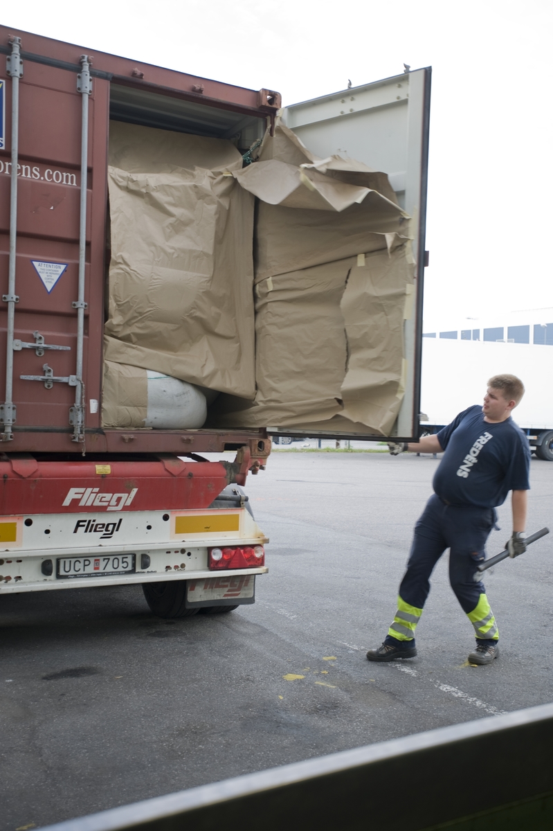 Titel: Bulkkaffe transporteras från Frihamnen till Arvid Nordqvist i Sundbyberg.