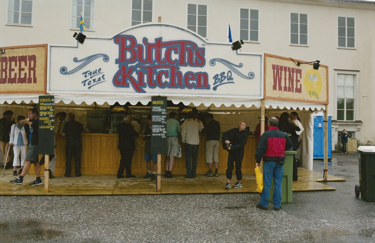 Sjöhistoriska Museet under 200-års jubileet av John Ericssons födelse. Öl- och mattält utanför museets. Butchs kitchen.