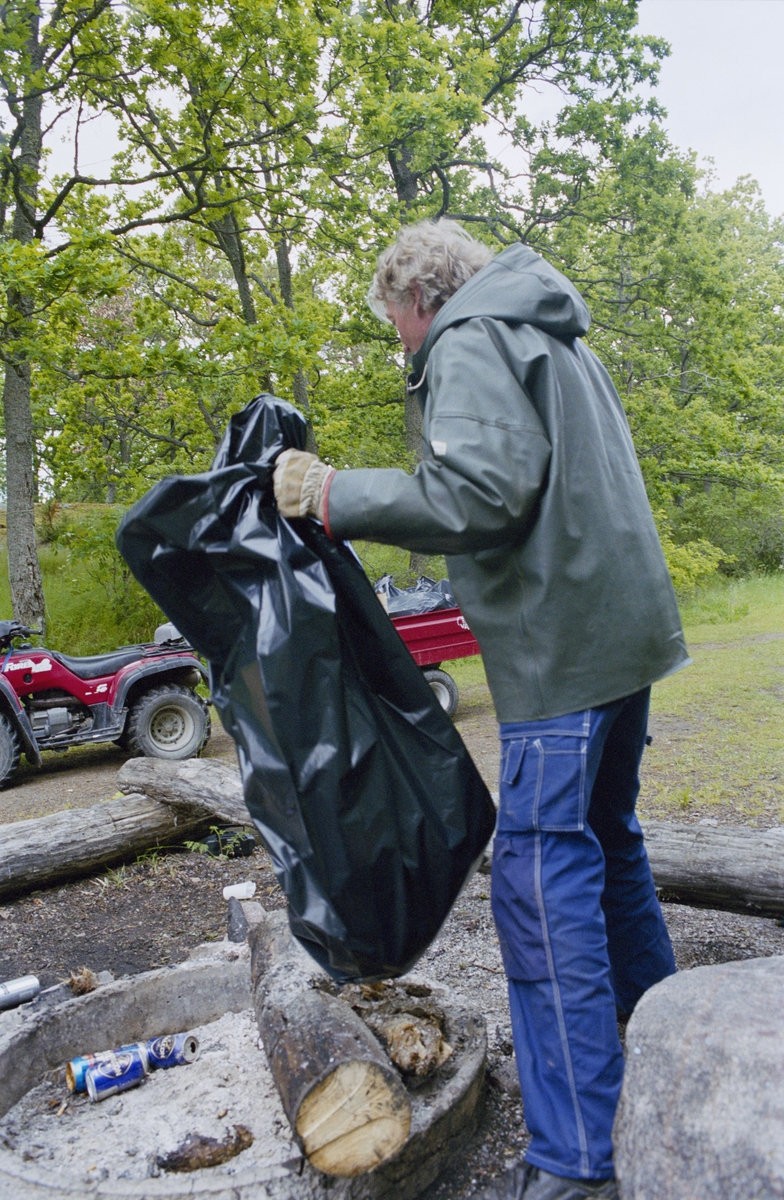 Titel: Lasse Westling, tillsyningsman på Finnhamn plockar skräp. Fotodatum 20030619-20030620