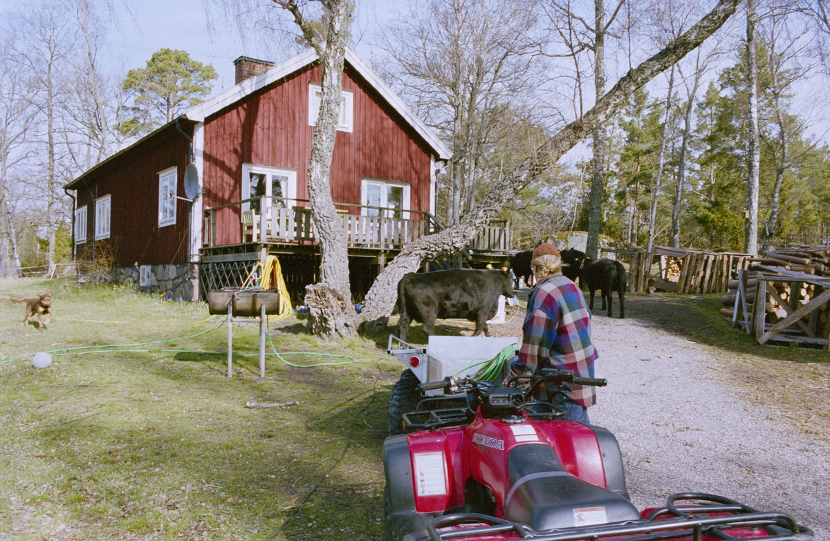 Titel: Kor av rasen Aberdeen Angus. Martina Högberg Ekobonde på Finnhamn Fotodatum 20030507