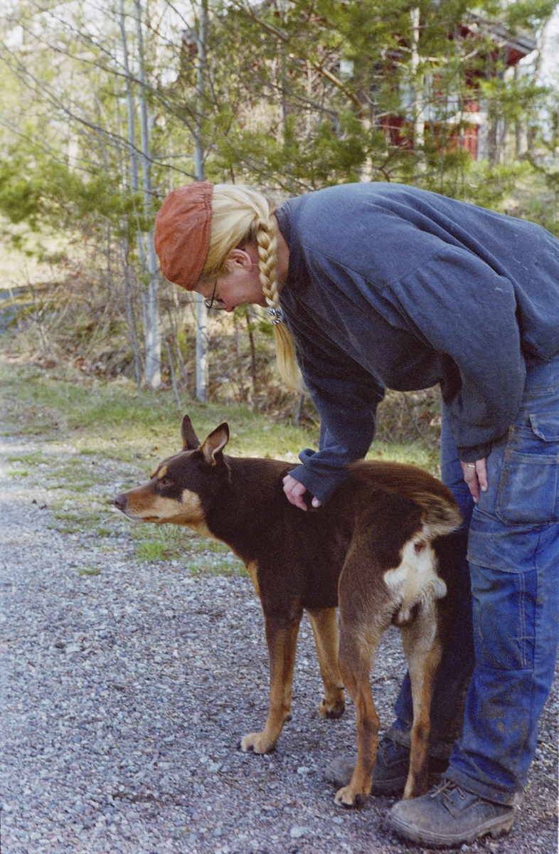 Titel: Martina Högberg Ekobonde på Finnhamn Fotodatum 20030507 Hunden Lukas.