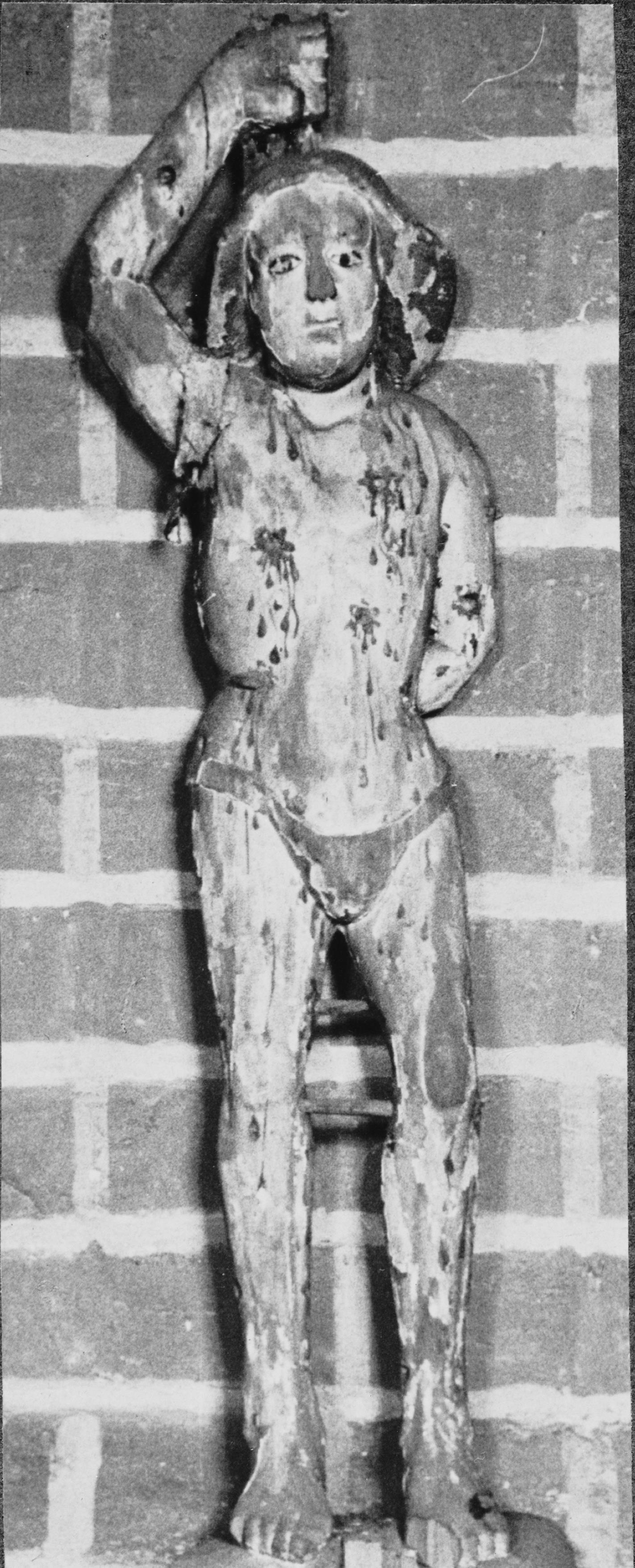 Skulptur, trä, Sankt Sebastian, nordtyskt arbete, 1400-talets slut.