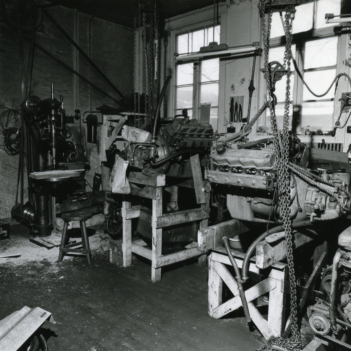 Mekaniska verkstaden 1972. Här skedde montering och service av båtmotorerna. Den mekansika verkstaden, liksom smedjan, ligger i samma byggnad som stroa verkstaden.