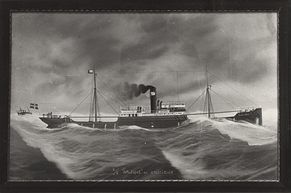 Akvarell av lastångfatyget BALTIQUE av Kristiania.