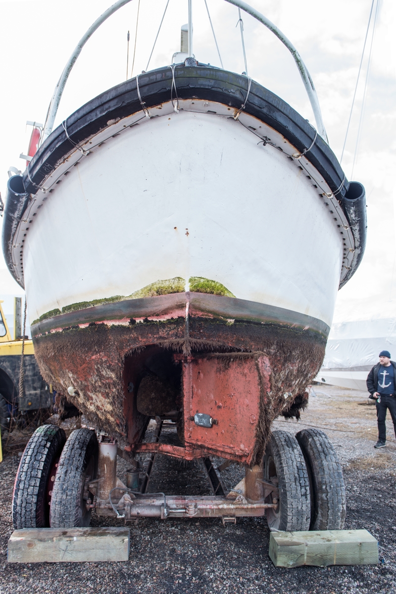 Titel: Sjöräddningskryssaren Bernhard Ingelsson bygg 1945. Blästras och målas på Boghammar Marin AB. Lidingö.