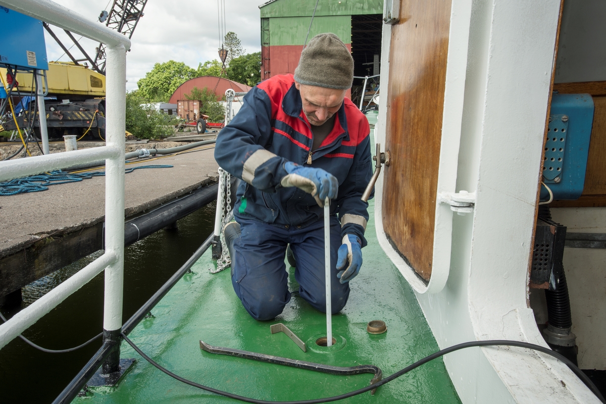Titel: Sjöräddningskryssaren Bernhard Ingelsson bygg 1945. Blästras och målas på Boghammar Marin AB. Lidingö.