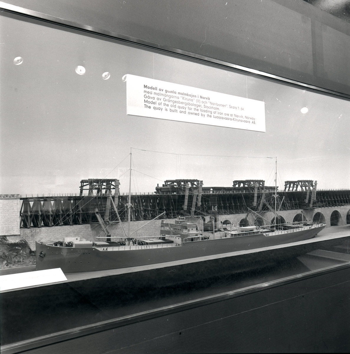 Permanent utställning i Rederisalen innan den bröts upp 1974. Överblick av utställningsinteriör.