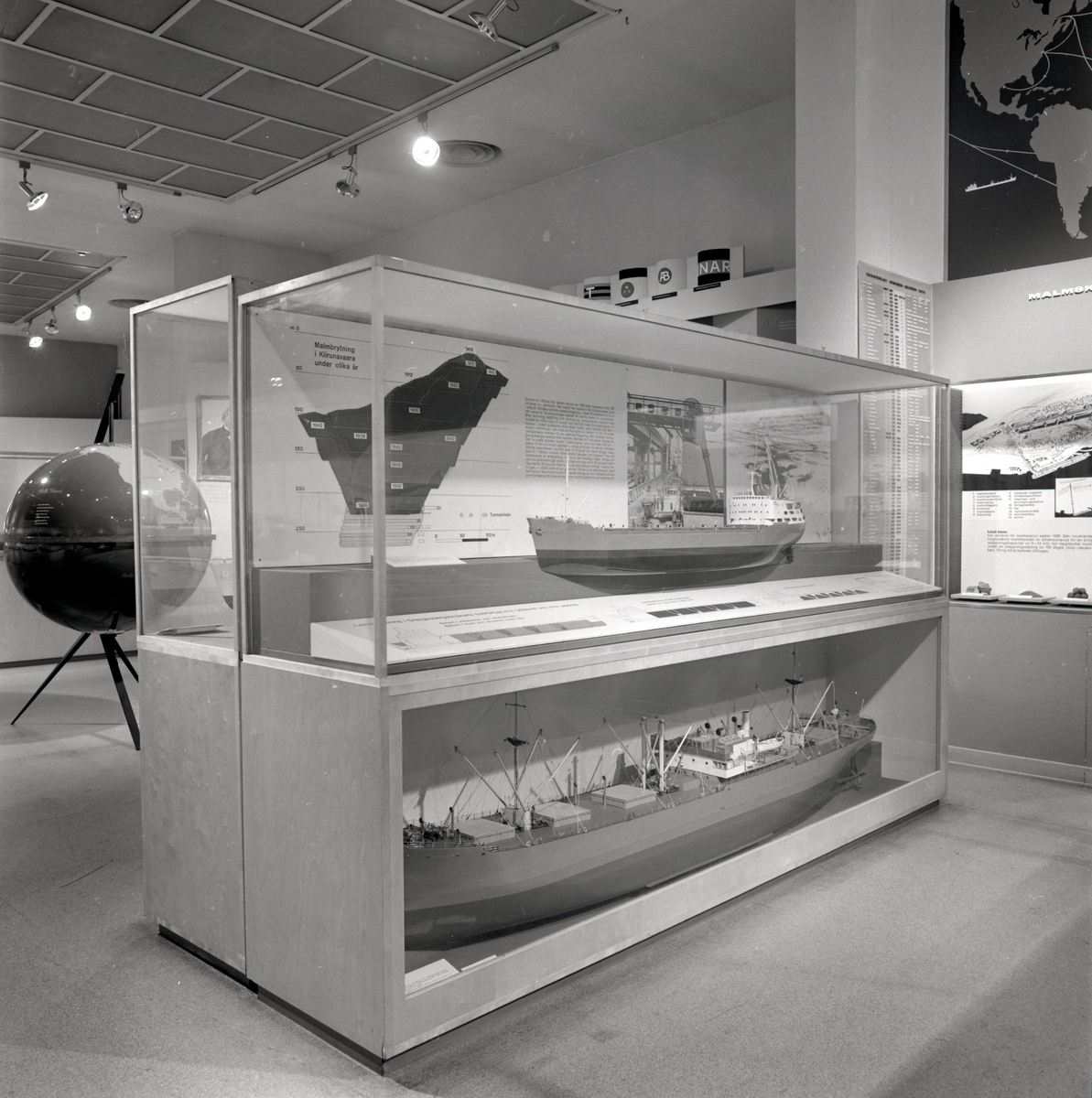 Titel: Permanent utställning i Rederisalen innan den bröts upp 1974. Överblick av utställningsinteriör.