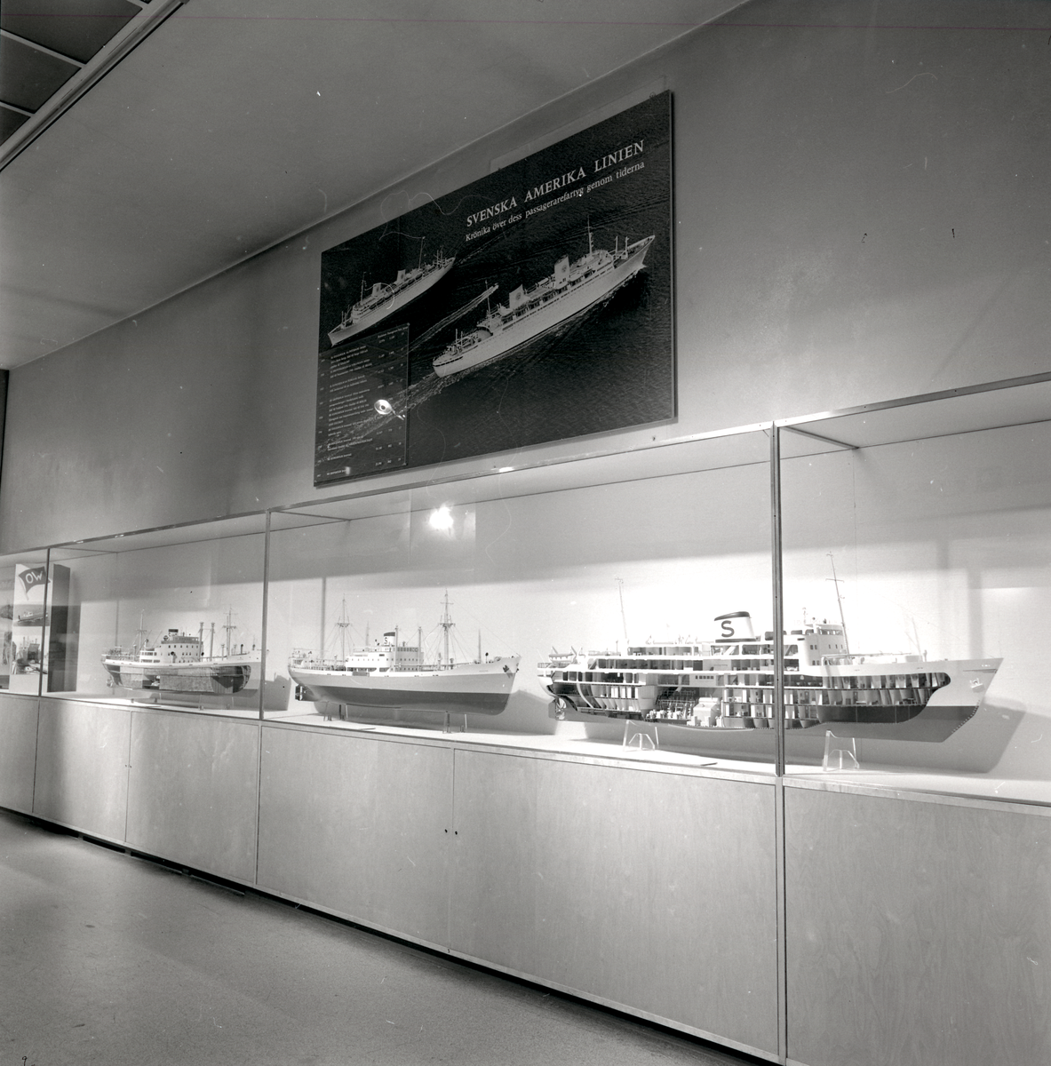 Titel: Permanent utställning i Rederisalen innan den bröts upp 1974. Överblick av utställningsinteriör.