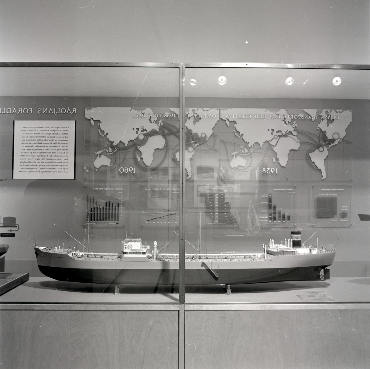 Titel: Permanent utställning i Rederisalen innan den bröts upp 1974. Överblick av utställningsinteriör.