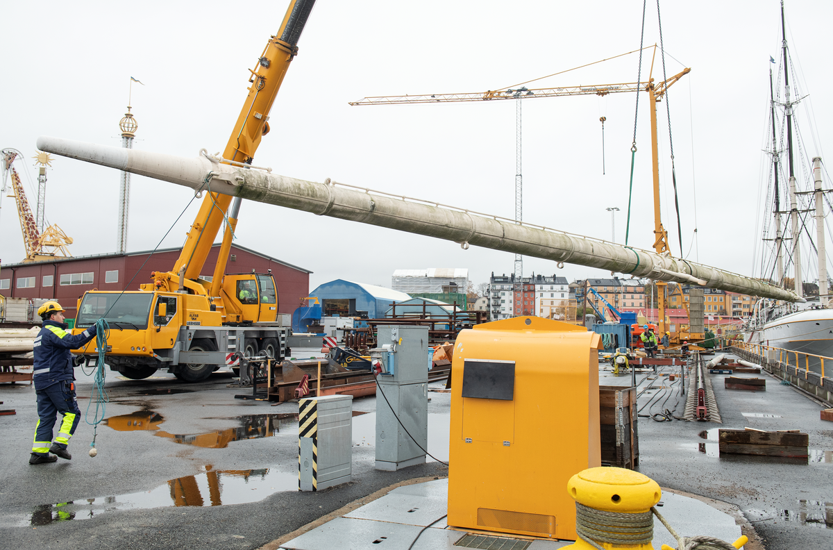 HMS Af Chapman, (vandrarhem) i docka, Beckholmen. Renoverar riggen.