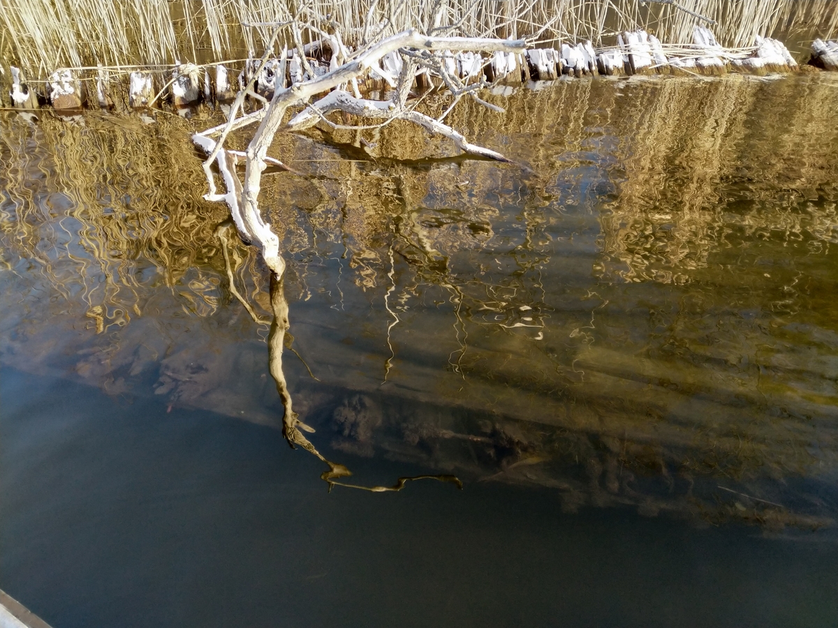 Fartygslämningen Bro 311 (ID 12) ligger i vattenytan.
