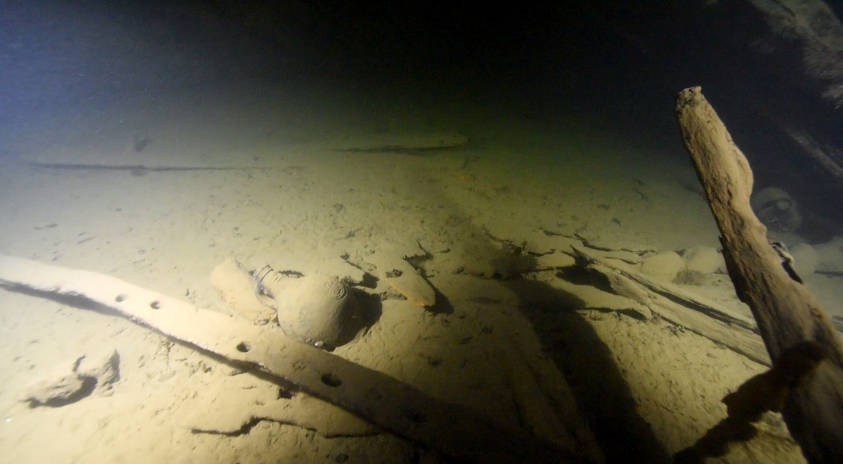 Bartmankrus på bottnen utanför vrakets SB låring.