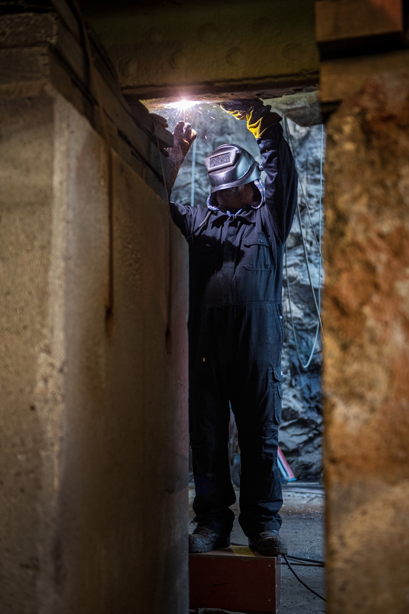 Isbrytaren SANKT ERIK på Stockholms Reparationsvarv, Beckholmen. Svetsarbeten.
