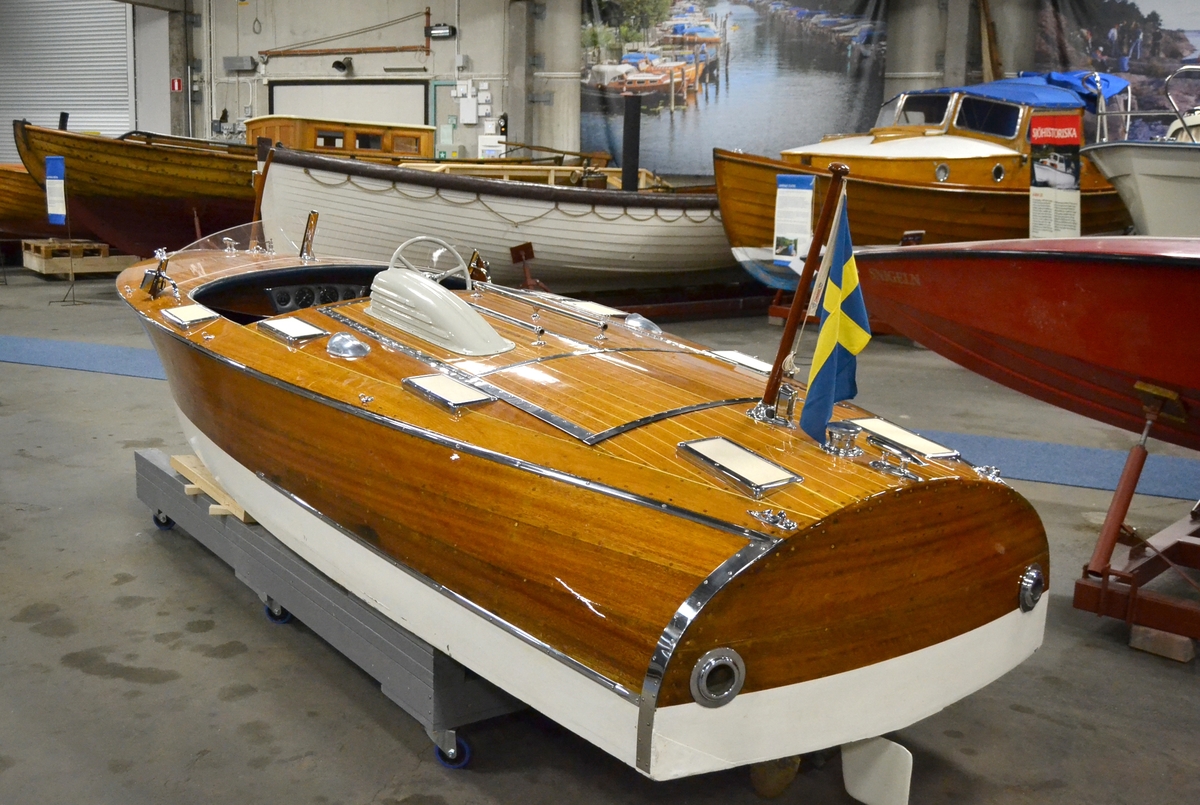 Titel: Motorbåten MARY-ANNE i Sjöhistoriska museets båthall på Rindö.