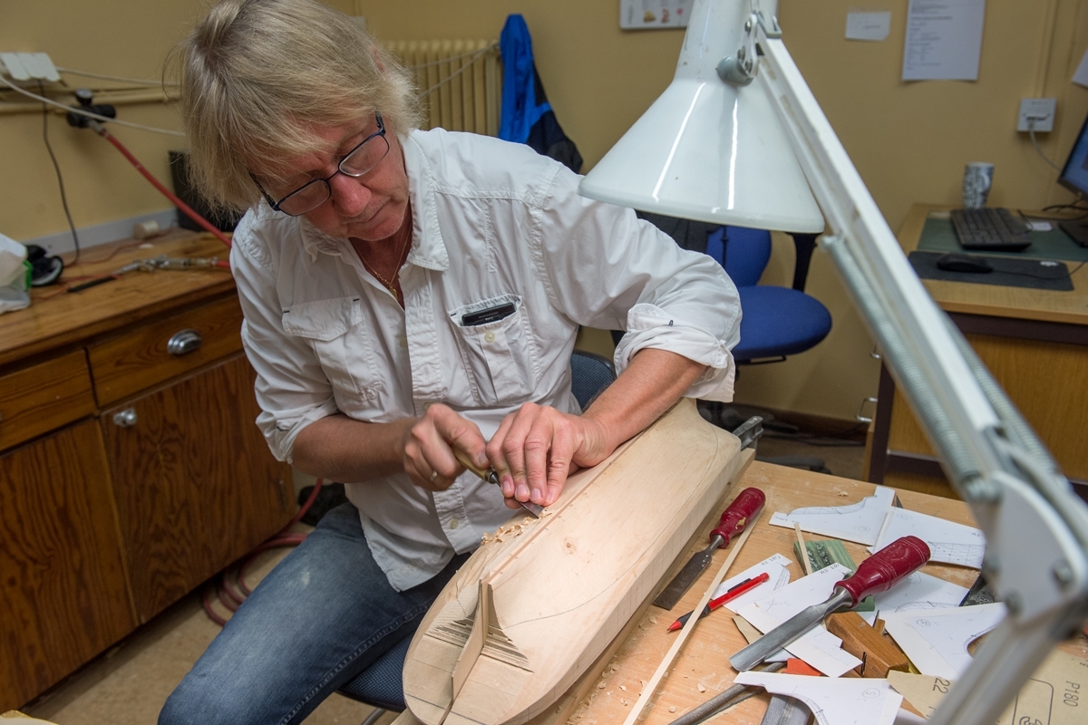 Modellbyggare Jan Claesson i Sjöhistoriska museets modellverkstad