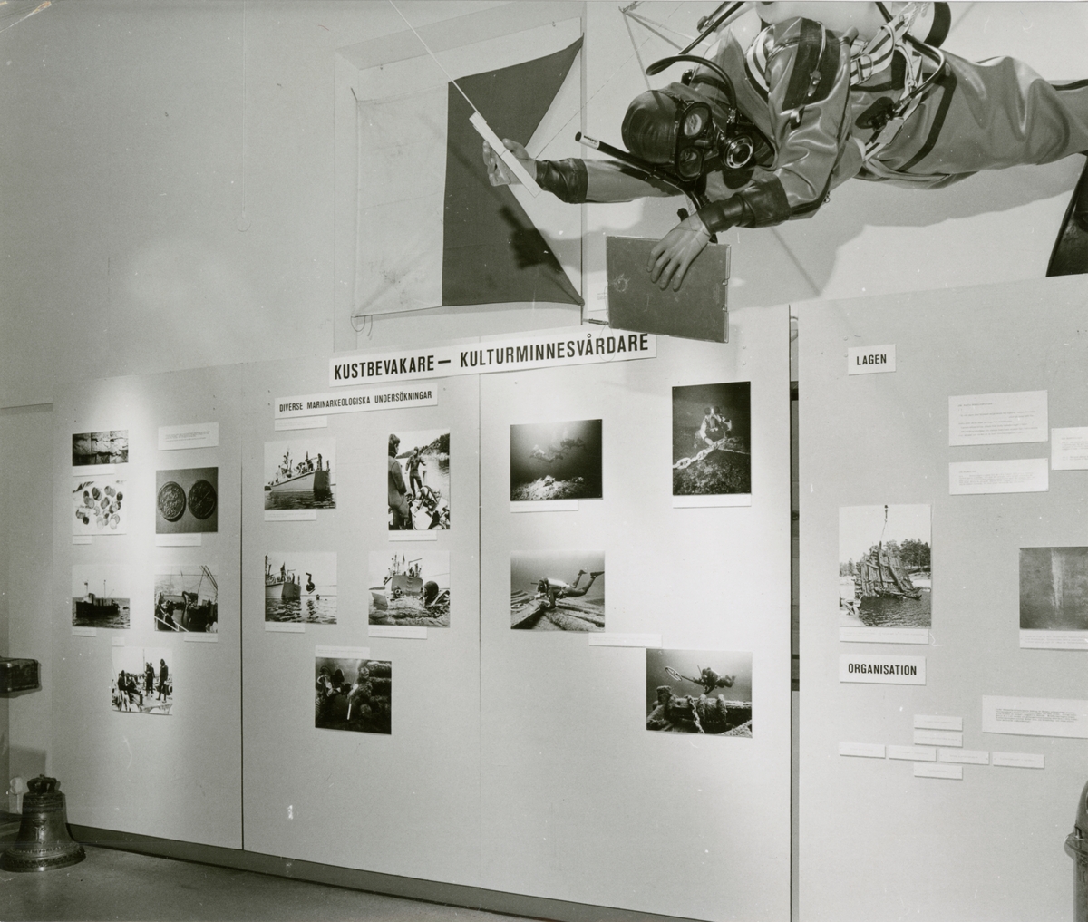 Utställningen "Kustbevakare Kultuminnesvårdare". Skärmvägg om marinarkeologiska undersökningar verksamhet.